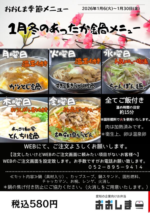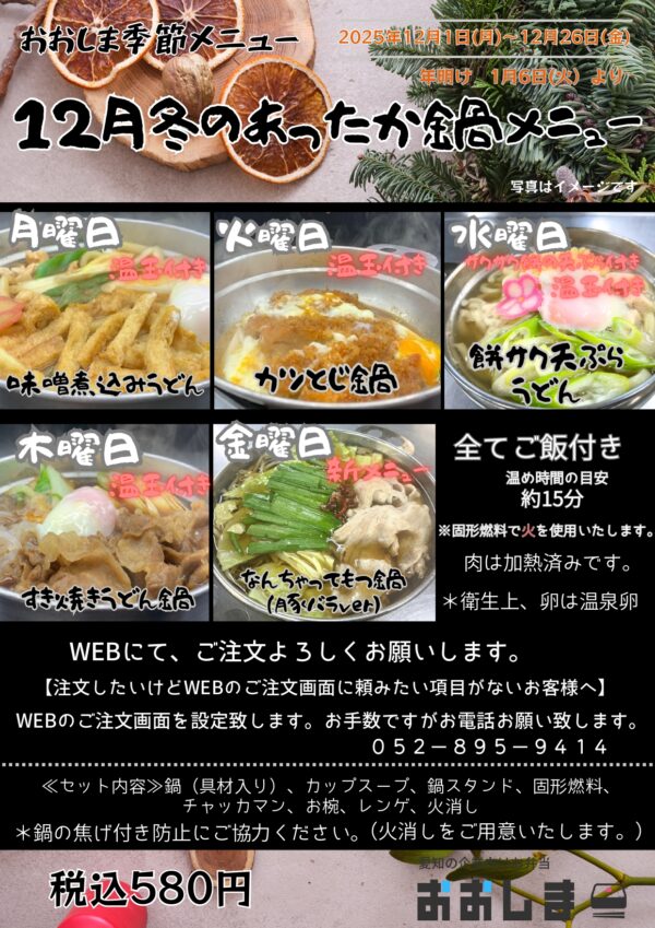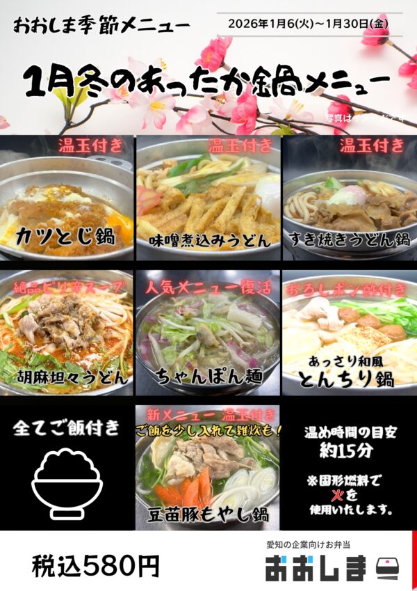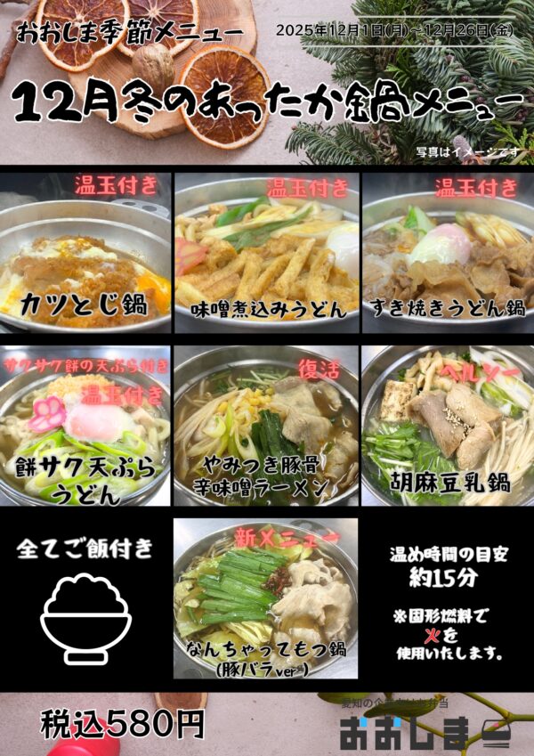 季節ごとに鍋、冷たい麺、丼の季節限定メニューを提供しています。